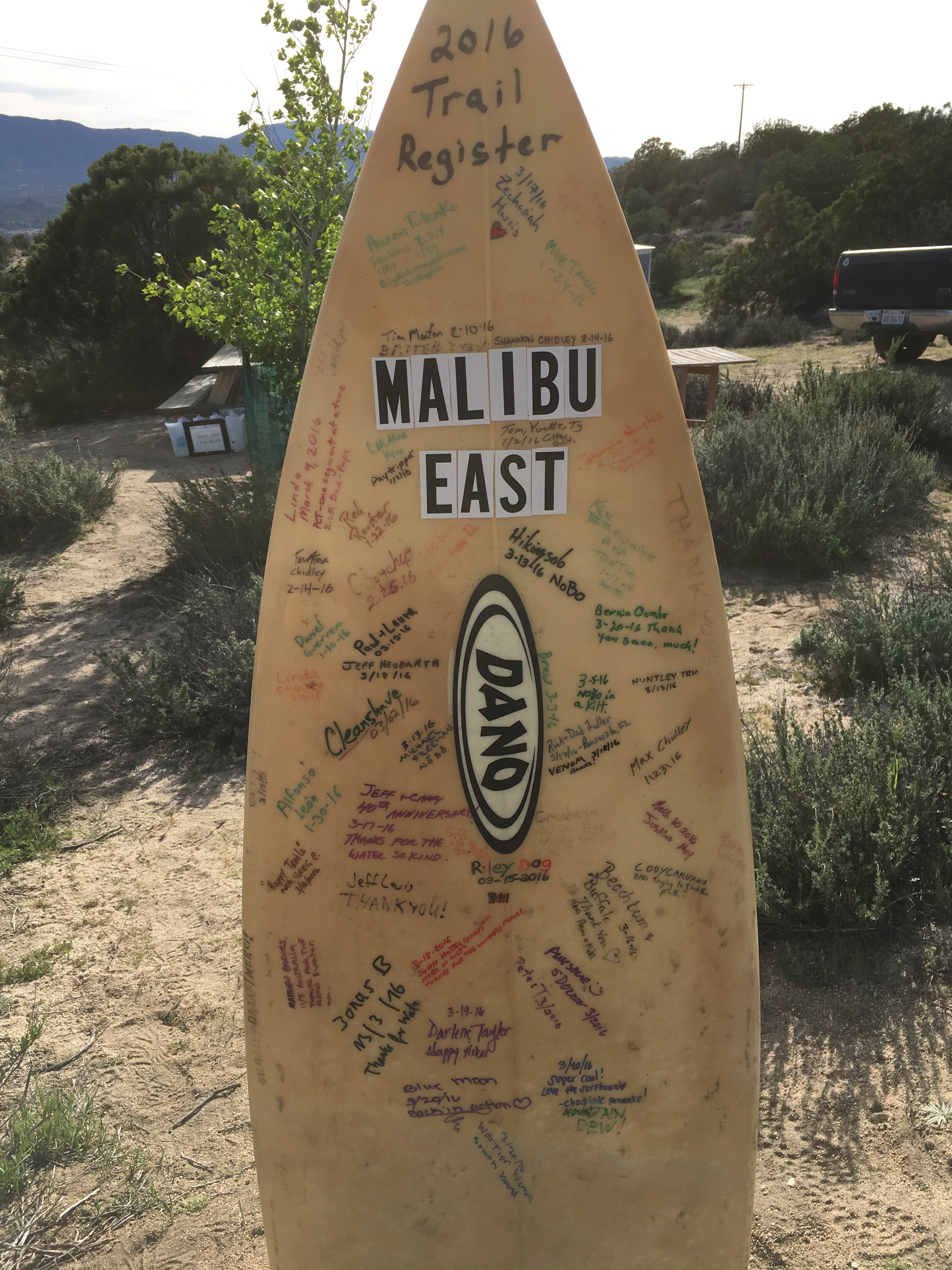 I ran into friends Steve and Debi (aka, “Blue Moon”) and their friend Lisa (aka, “Warrior Woman”) at my place just as Steve was dropping them off for a three-day section hike from Anza to Warner Springs. (If you look close, you can see their sigs below, toward the bottom.) Hope to see the three of them back in a few weeks for Celebrate Anza 2016.