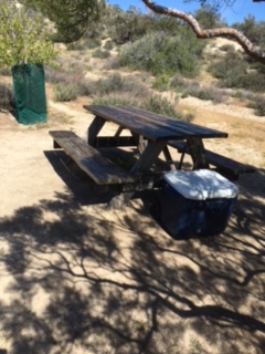 I spent several hours at Walden, adding a new layer of lacquer to the picnic tables and putting the trash cans and cooler (filled with soda) in place.