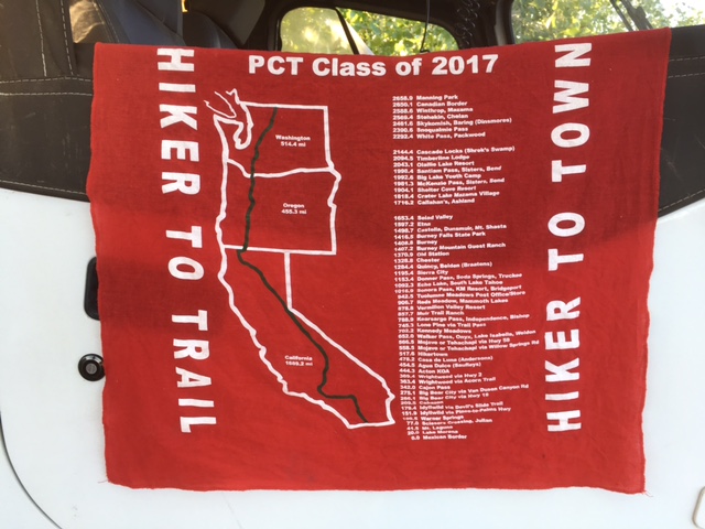 Lost and found On May 15, 2017 By trailangelmaryIn Uncategorized A hiker left their official PCT 2017 bandana at my place. I assume it was left there by accident. If it’s yours, let me know and I will mail it to your home address. Share this: Click to share on X (Opens in new window) X Click to share on Facebook (Opens in new window) Facebook Like Loading... Related