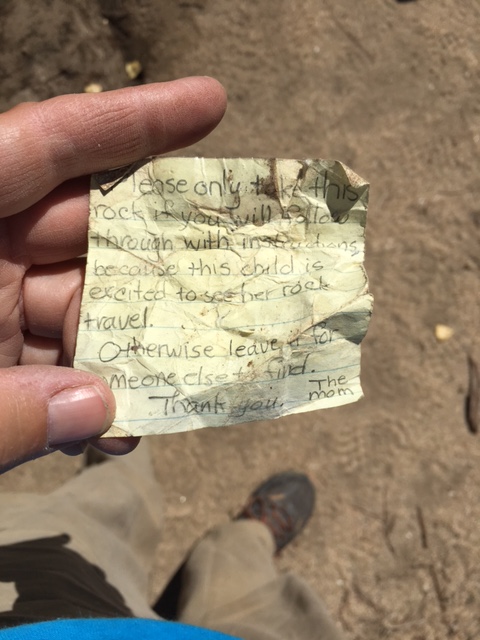 UPDATE: When I checked the Little Free Library on October 28, the rock and note were gone, so I suspect it was picked up by a hiker and carried further south on the PCT.