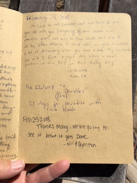 Hiker Register March 2 On March 2, 2018March 15, 2018 By trailangelmaryIn hiking/sauntering Share this: Click to share on X (Opens in new window) X Click to share on Facebook (Opens in new window) Facebook Like Loading... Related