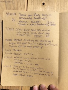 Hiker Register March 15 On March 15, 2018 By trailangelmaryIn hiking/sauntering Share this: Click to share on X (Opens in new window) X Click to share on Facebook (Opens in new window) Facebook Like Loading... Related