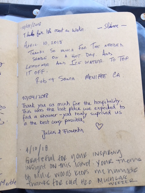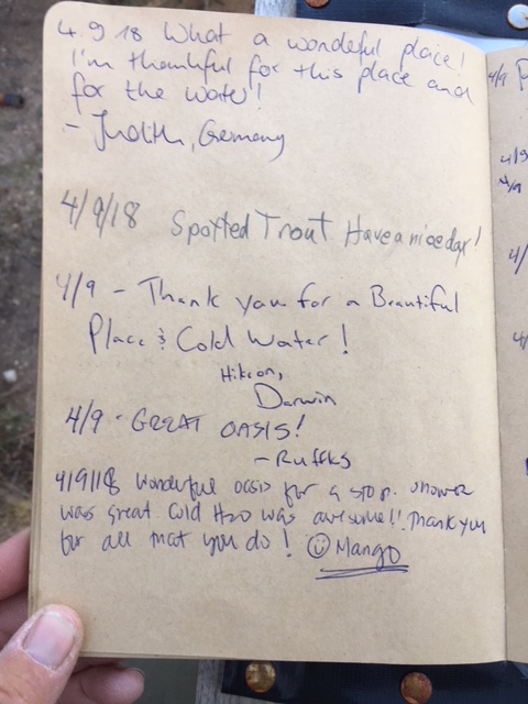 Hiker Register April 11 On April 11, 2018 By trailangelmaryIn hiking/sauntering Share this: Click to share on X (Opens in new window) X Click to share on Facebook (Opens in new window) Facebook Like Loading... Related