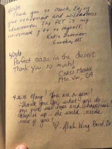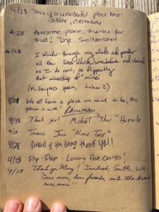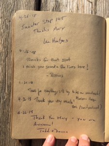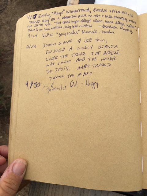 Hiker Register April 30 On April 30, 2018 By trailangelmaryIn hiking/sauntering Share this: Click to share on X (Opens in new window) X Click to share on Facebook (Opens in new window) Facebook Like Loading... Related