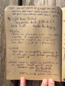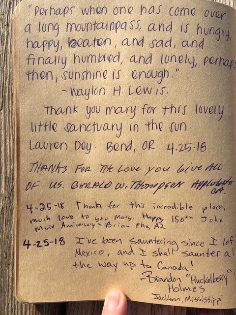 Hi Mary, I was thinking more about sauntering when I wrote the following poem at mile 155, and wanted to share it with you: