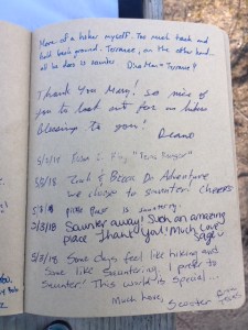 Hiker Register May 7 On May 7, 2018 By trailangelmaryIn hiking/sauntering Share this: Click to share on X (Opens in new window) X Click to share on Facebook (Opens in new window) Facebook Like Loading... Related