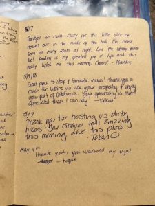 Hiker Register May 9 On May 9, 2018 By trailangelmaryIn hiking/sauntering Share this: Click to share on X (Opens in new window) X Click to share on Facebook (Opens in new window) Facebook Like Loading... Related