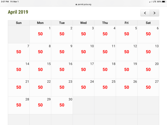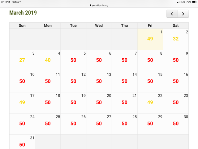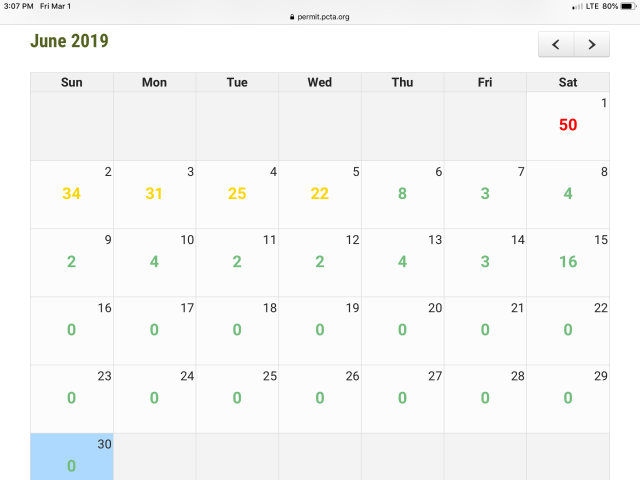 2019 looks to be another record-setting year for number of northbound PCT thru hikers. Here are the number of daily permits for the Southern Terminus issued, as of 3pm PT on March 1.