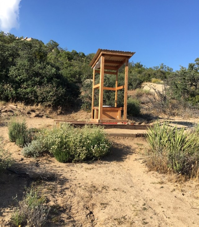 With the sharp decrease in the number of hikers passing by my place, I decided it was time to remove the outhouse, shower, and trash can. As always, the water tank, picnic tables, and Little Free Library remain.