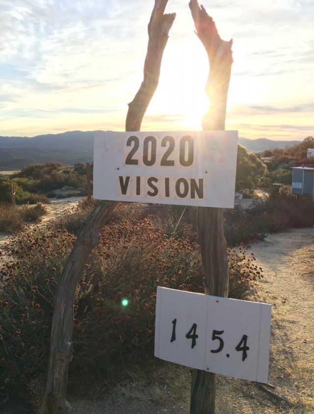 Each year I create a unique theme for my hiker oasis. In 2020 the theme revolves around the idea of perfect vision. While ‘2020 vision’ usually refers to the visual acuity of eyes, I am more interested in the idea of perfect inner vision … the ability to ‘see’ inside your self and understand your own values and motives. So, the question I am asking hikers to respond to is: ‘Why are you doing this?’ I realize that, for many of you, the reason(s) you decided to thru hike the PCT are very private ones — not something you would normally share with strangers by writing it in a quasi-public document. If that describes you, feel free to give your ‘public’ reason or simply leave your response unsigned.