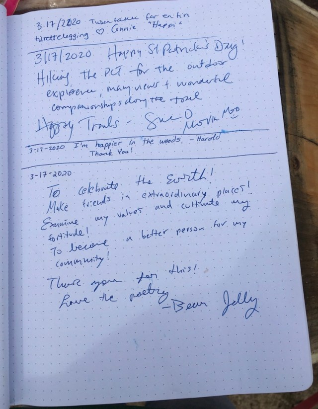 Hiker Register, March 20 On March 20, 2020 By trailangelmaryIn why Share this: Click to share on X (Opens in new window) X Click to share on Facebook (Opens in new window) Facebook Like Loading... Related
