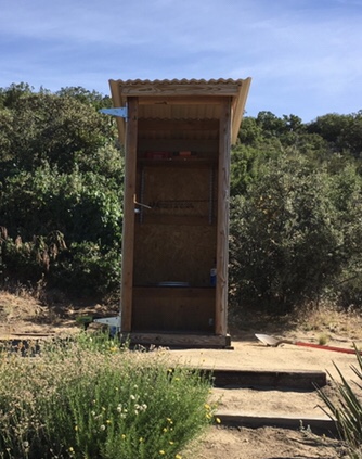 Each spring, my hiker oasis has a few extra amenities for the expected crush off thru hikers: an outhouse and shower, a trash can, and sunshade over the picnic area. With the thru hiker season winding down, I removed these “extra.” (The water tank, picnic tables, and little free library are there year-round.) I documented removal of the outhouse.