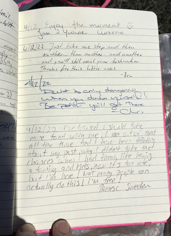 Hiker Register, April 13 On April 13, 2022 By trailangelmaryIn journey-learn Share this: Click to share on X (Opens in new window) X Click to share on Facebook (Opens in new window) Facebook Like Loading... Related