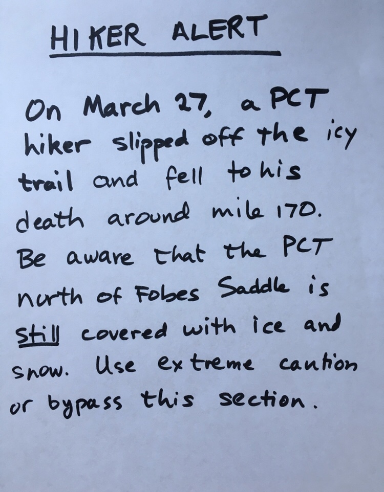 I learned some sad news: a PCT hiker died just north of my place. The exact location and identity of the hiker have not been released. More information is available at: