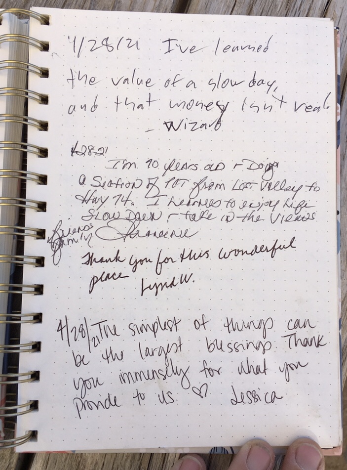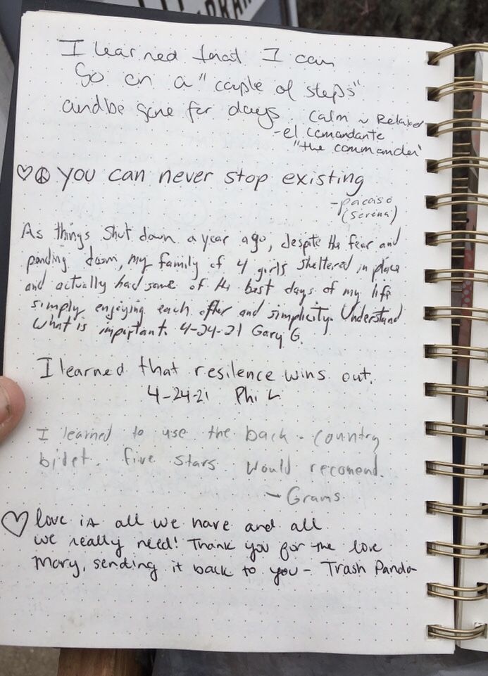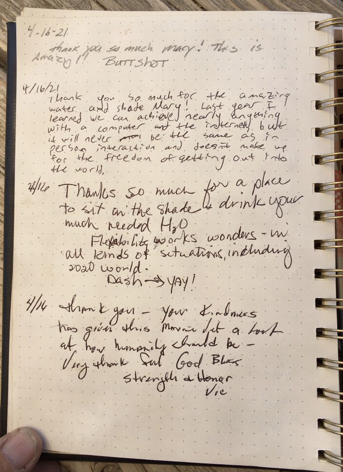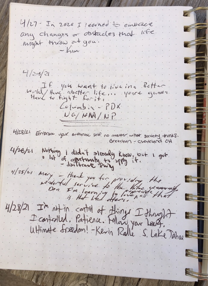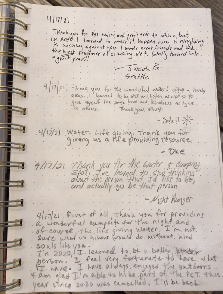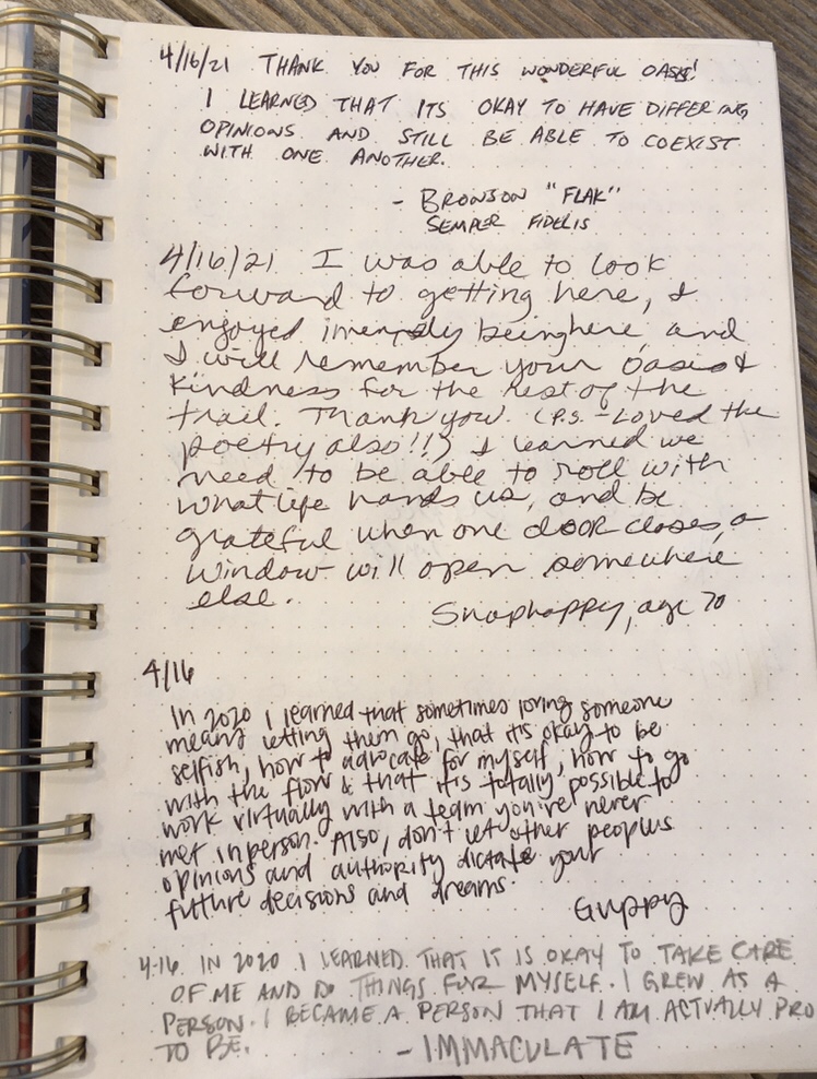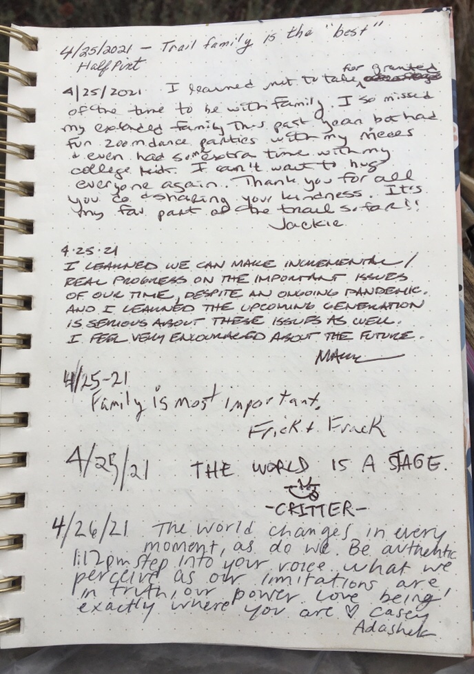 Also as in previous years, I set my postcard station and invited hikers to fill out a Mother’s Day card for their mother, which I mailed out on Monday. A total of 21 cards were sent, including three cards to international addresses.