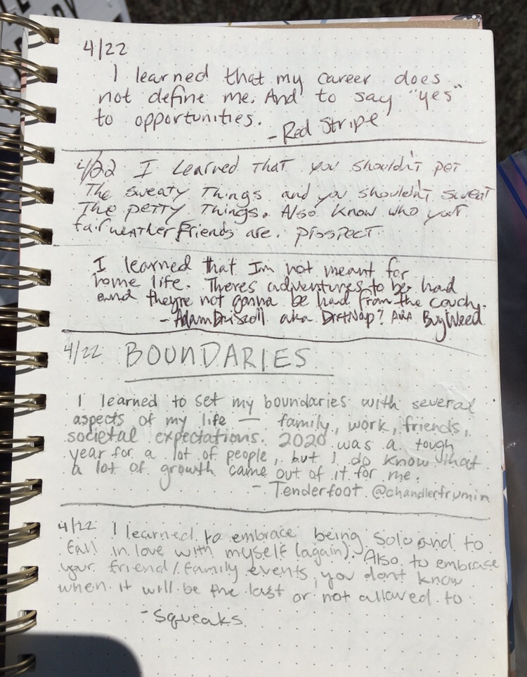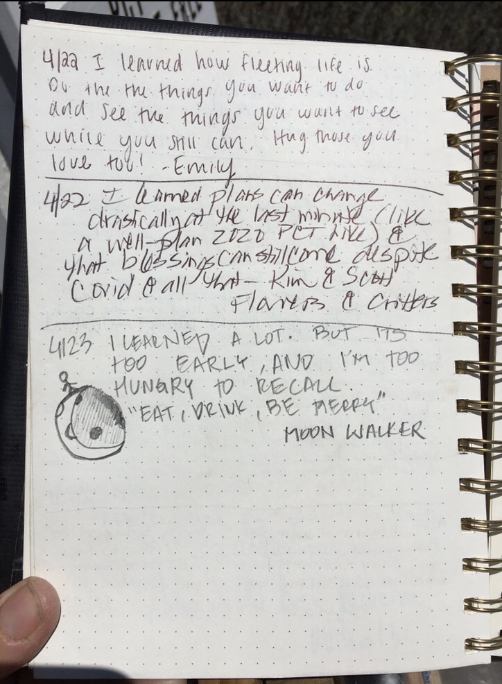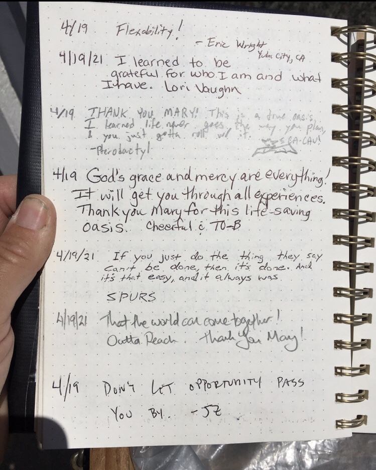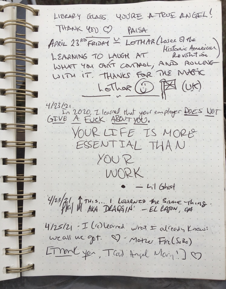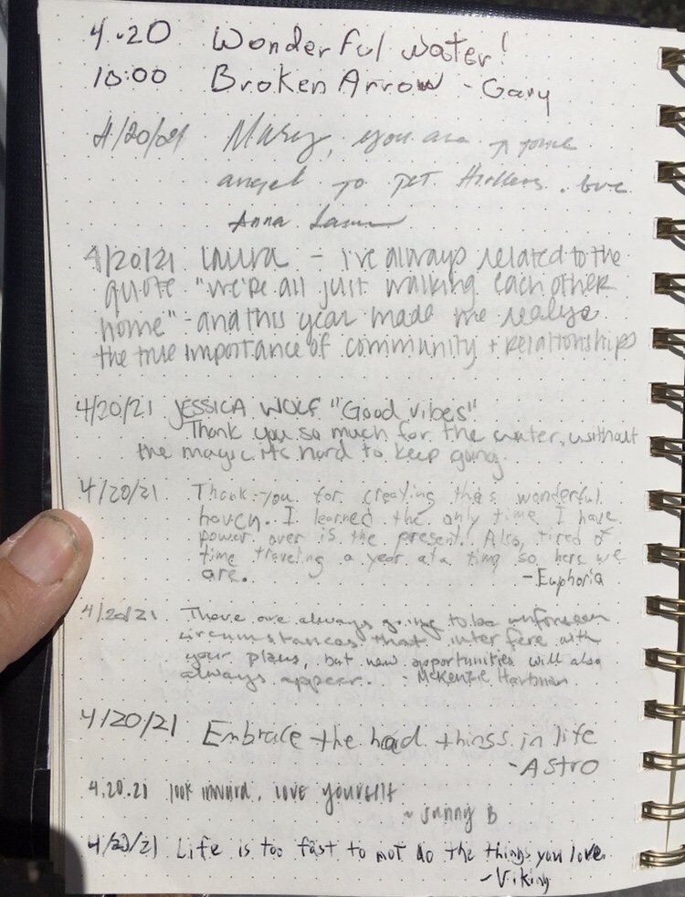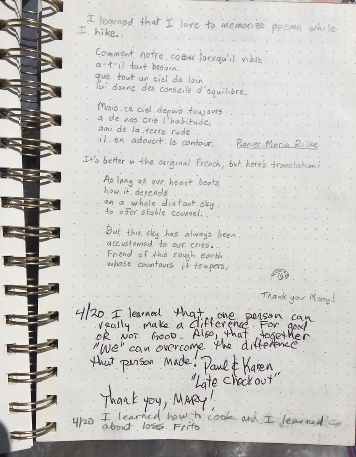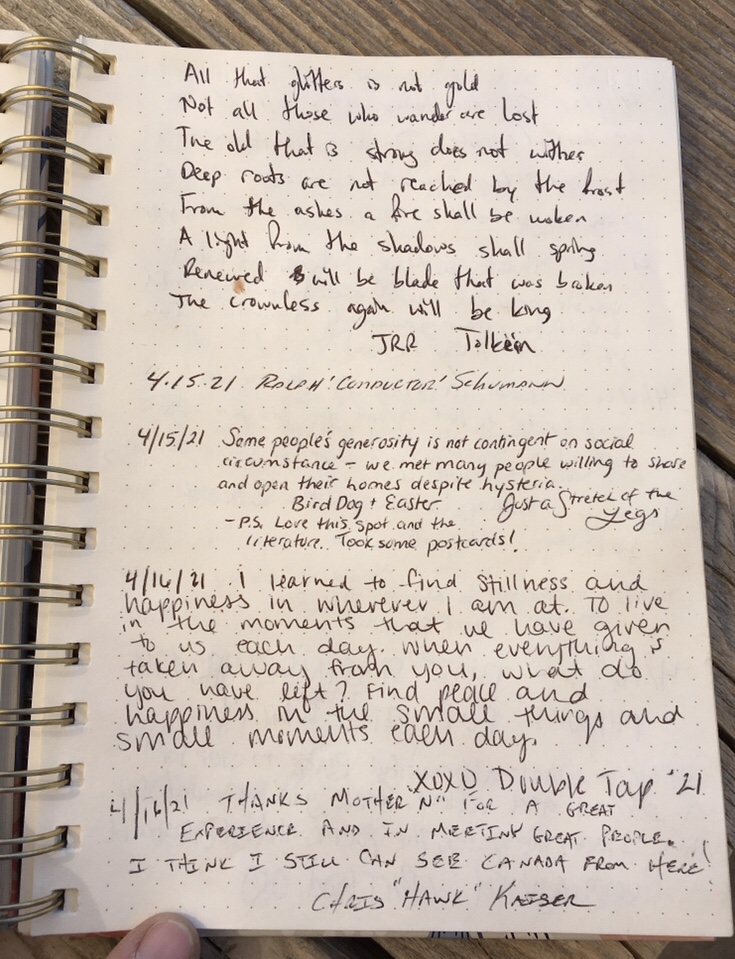 Also as in previous years, I set my postcard station and invited hikers to fill out a Mother’s Day card for their mother, which I mailed out on Monday. A total of 21 cards were sent, including three cards to international addresses.