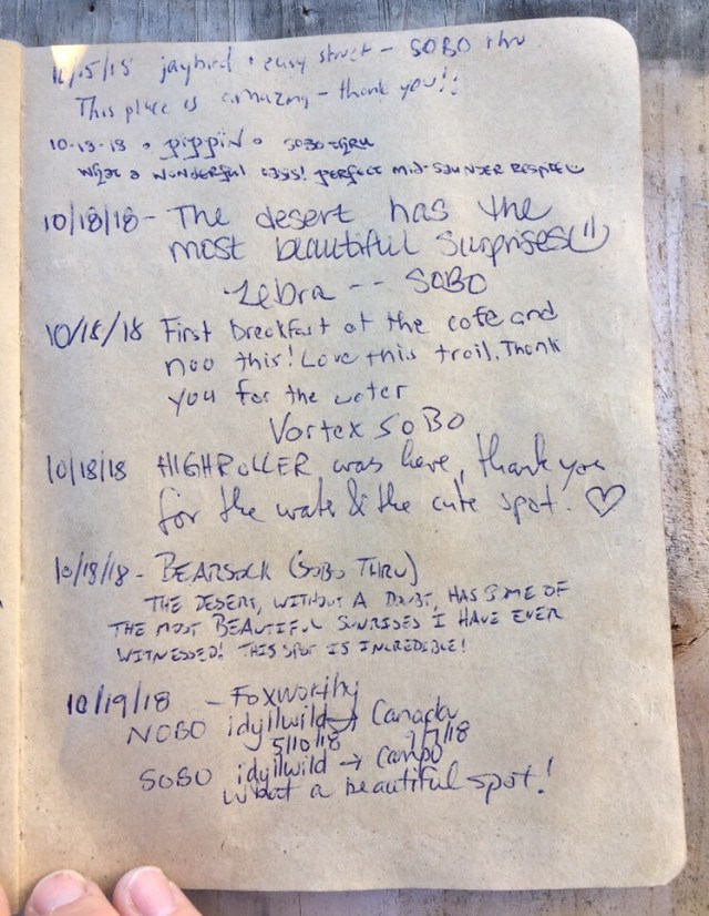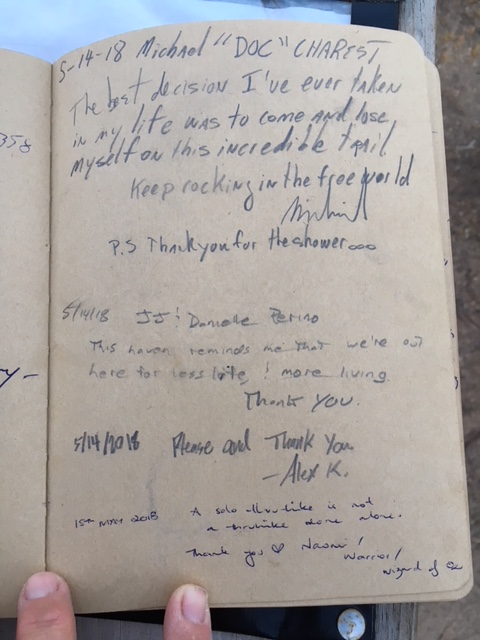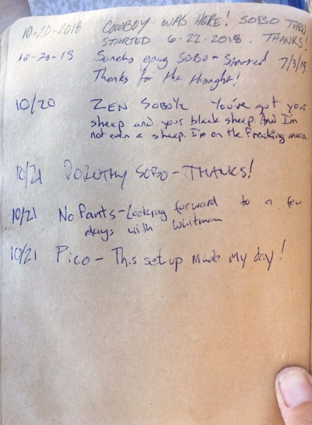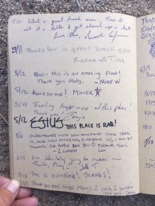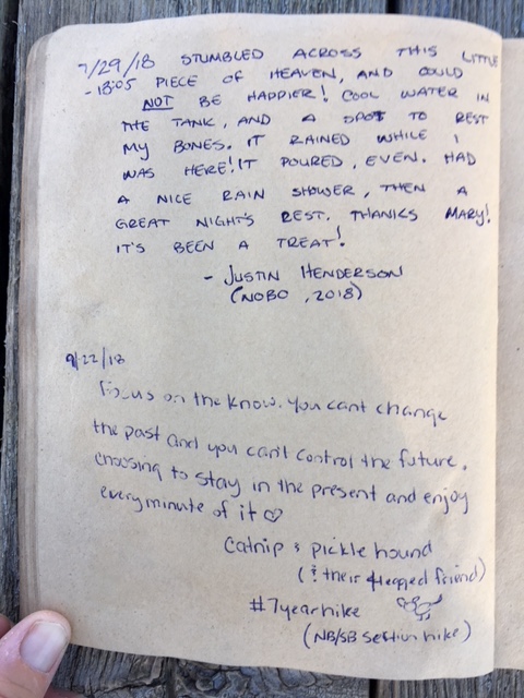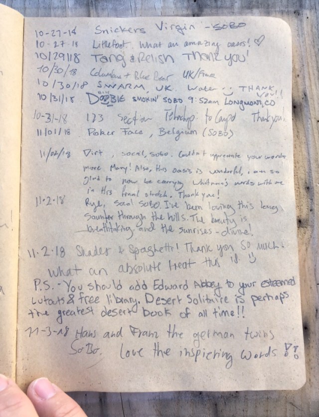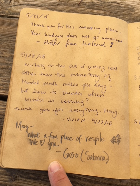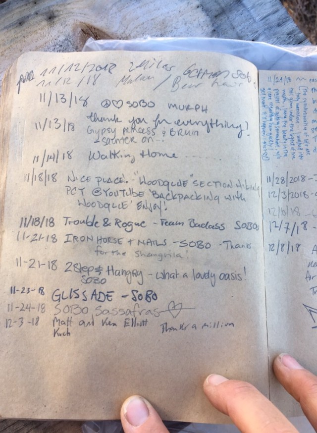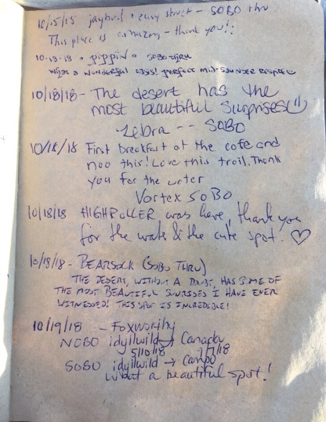 Here is the last page of entries in the hiker register for 2018.