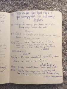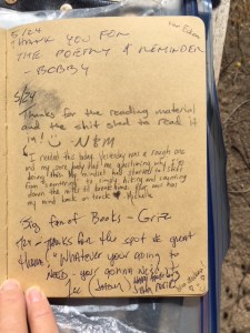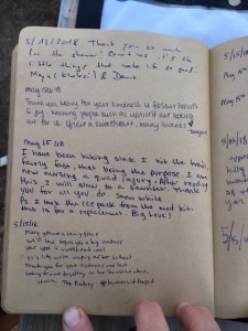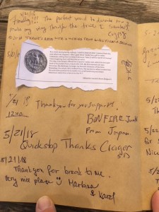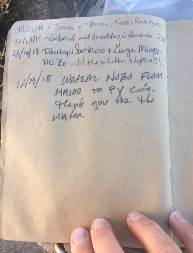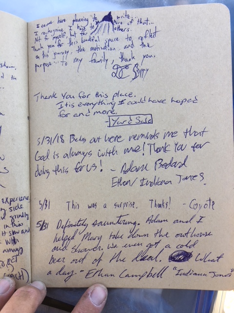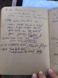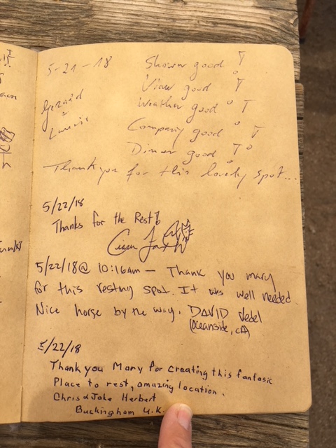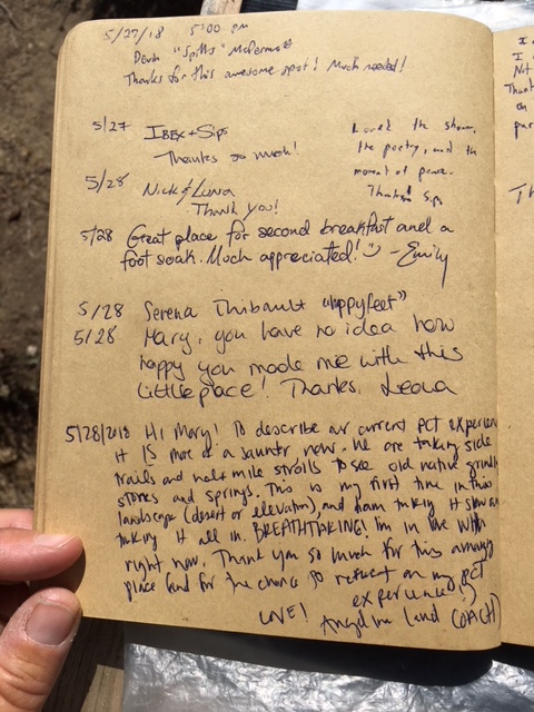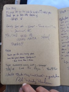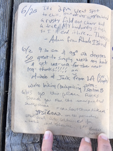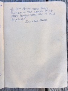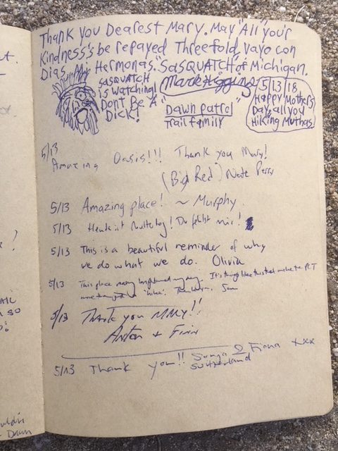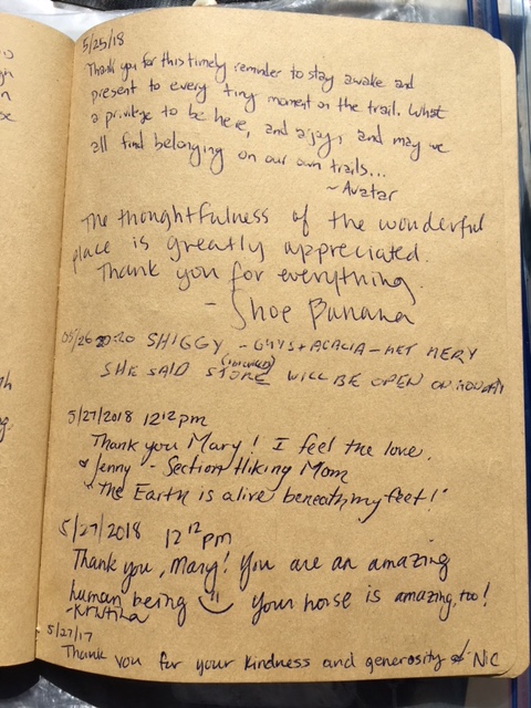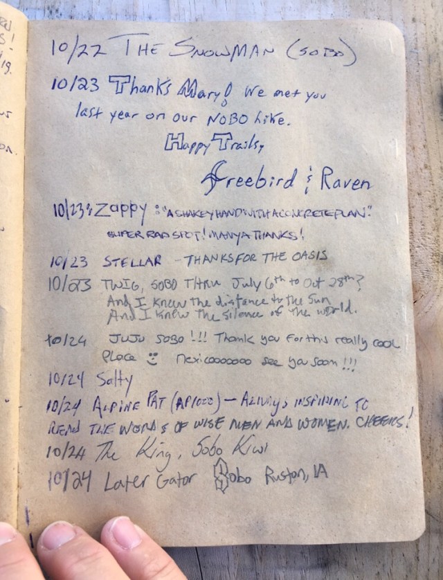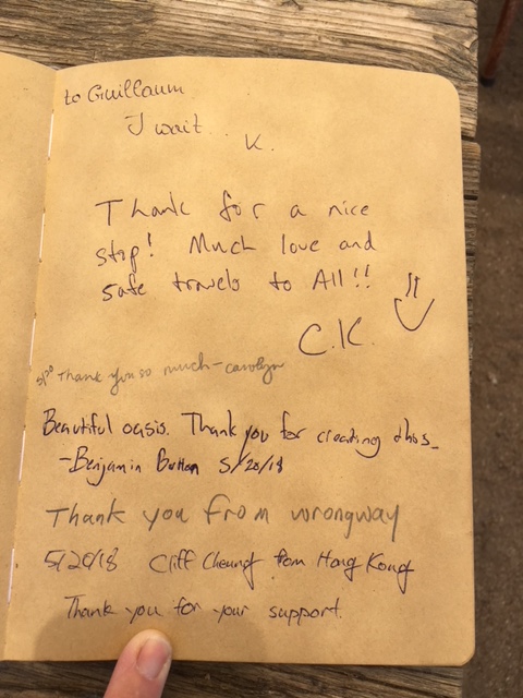Here is the last page of entries in the hiker register for 2018.