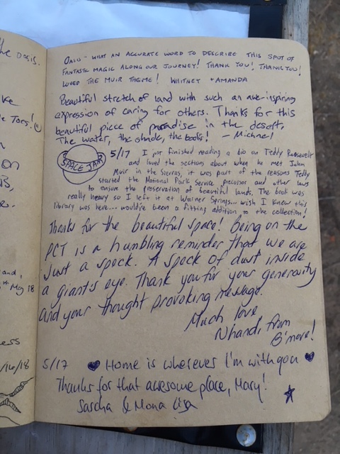 For 2018, the theme is John Muir, who noted his preference for sauntering over hiking. The 2018 hiker register poses the question: “Have you ever sauntered? Is your PCT adventure a hike or a saunter?”