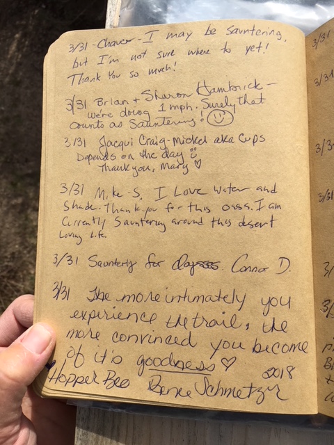 For 2018, the theme is John Muir, who noted his preference for sauntering over hiking. The 2018 hiker register poses the question: “Have you ever sauntered? Is your PCT adventure a hike or a saunter?”