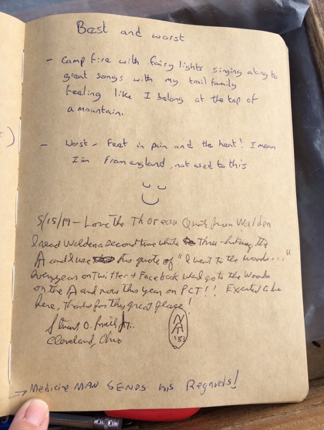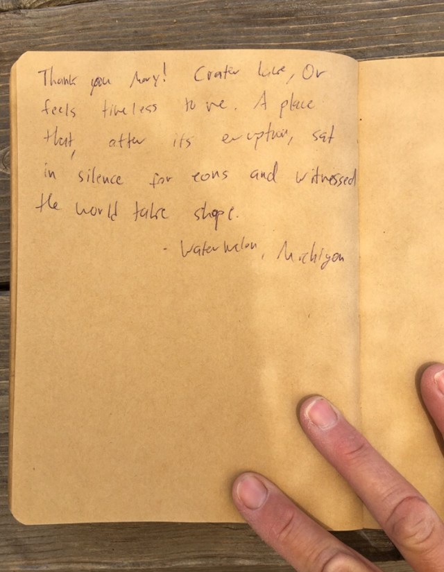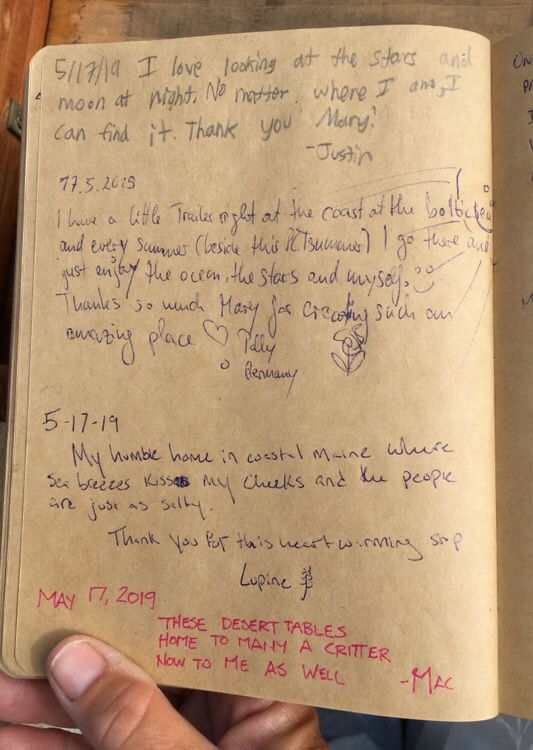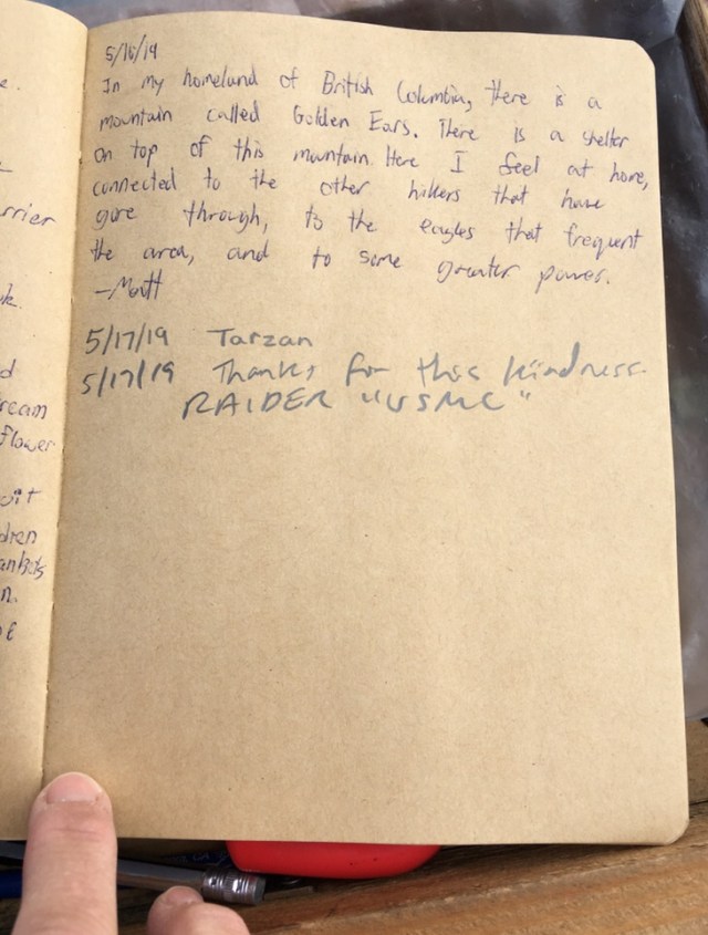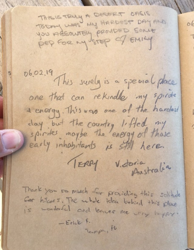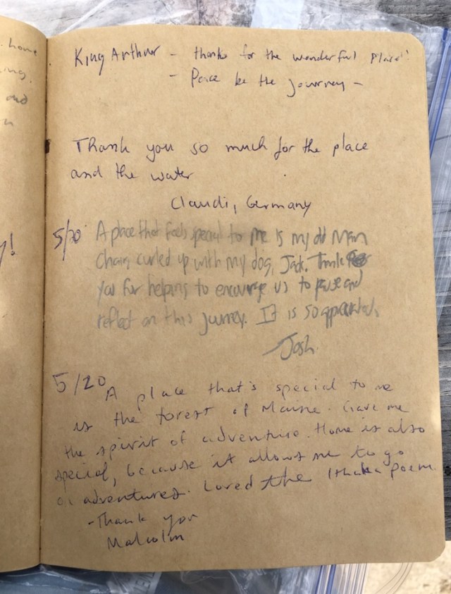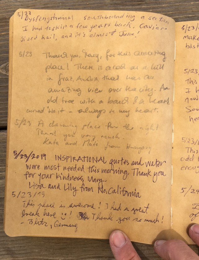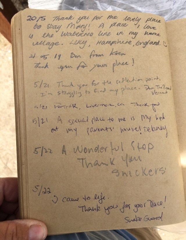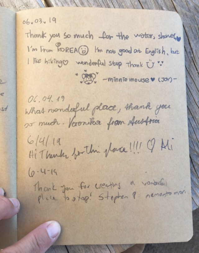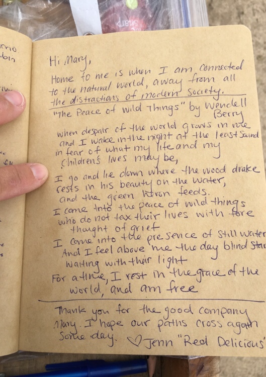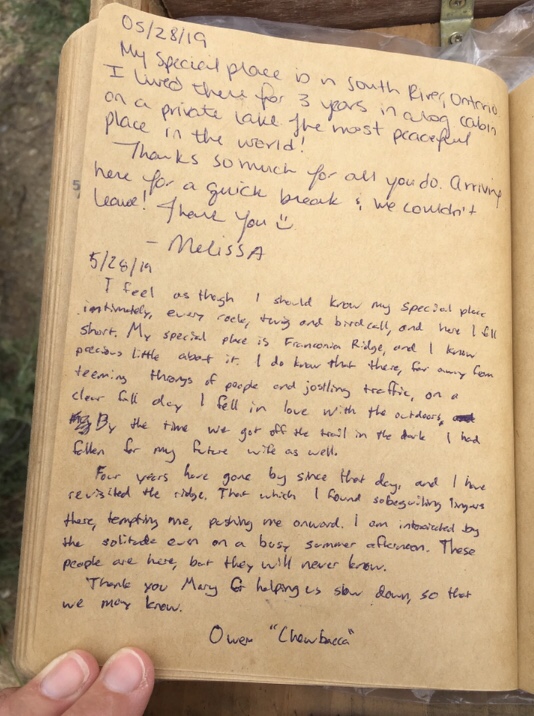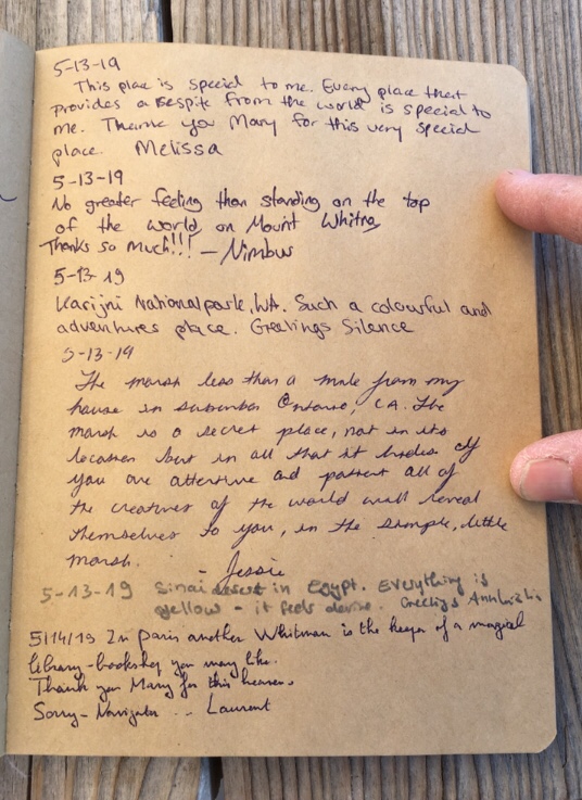 In 2019, the hiker oasis celebrated the 200th anniversary of Walt Whitman’s birth. The hiker register prompt followed a lead from Whitman’s poem “Crossing Brooklyn Ferry,” and asked hikers to describe a place that is special to them … that they feel a special connection with.
