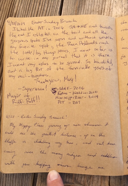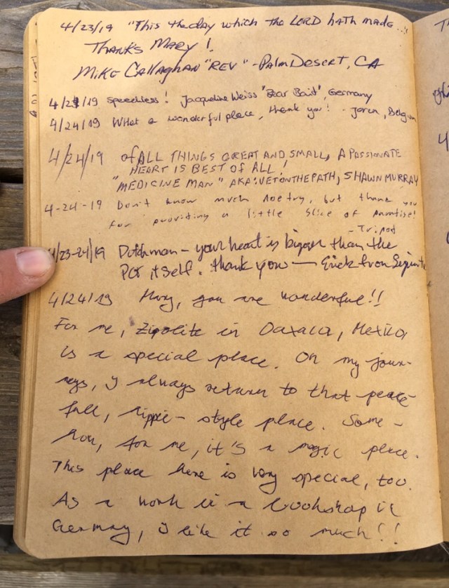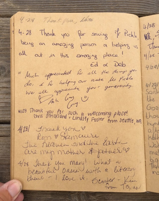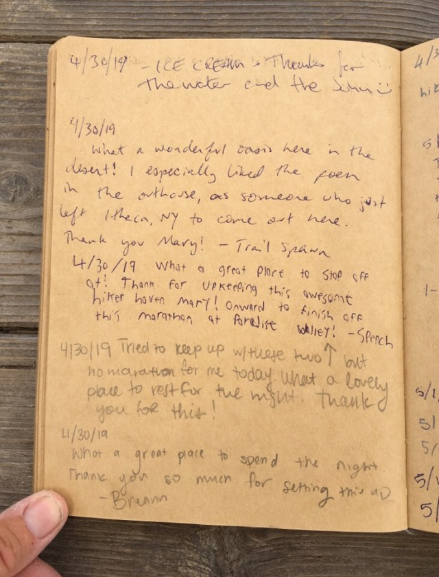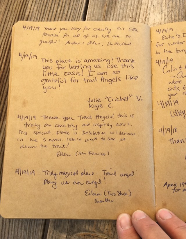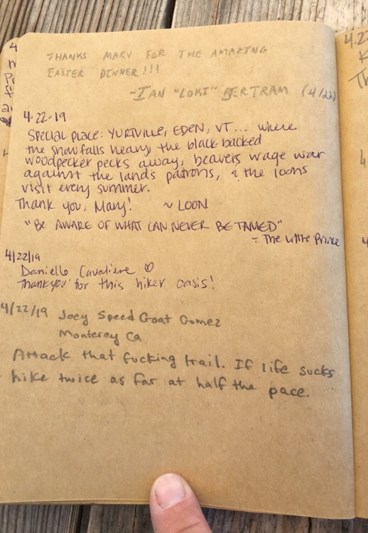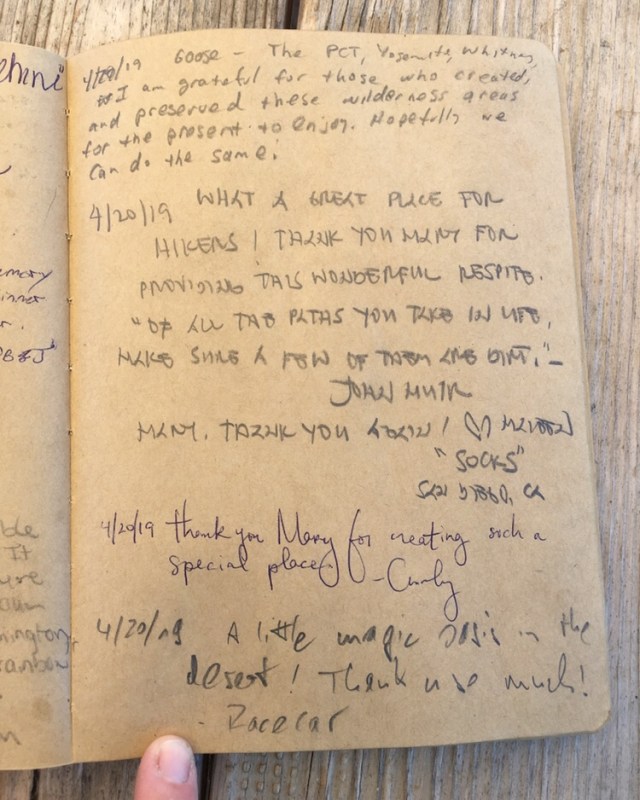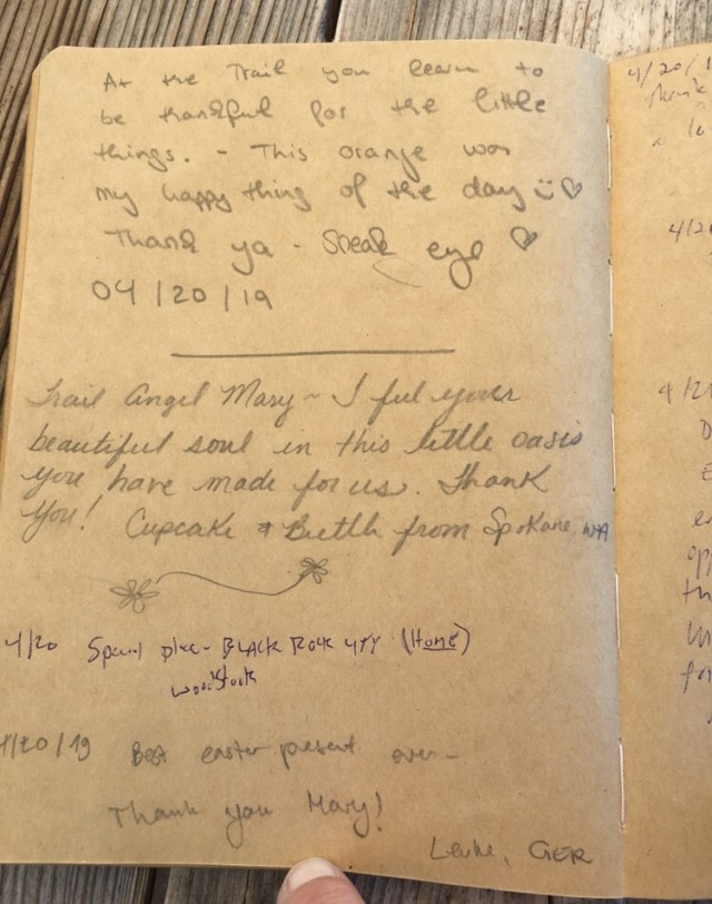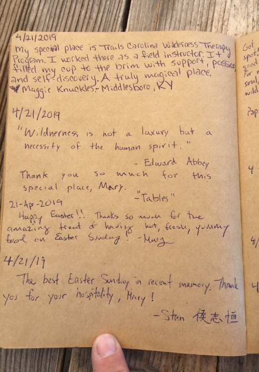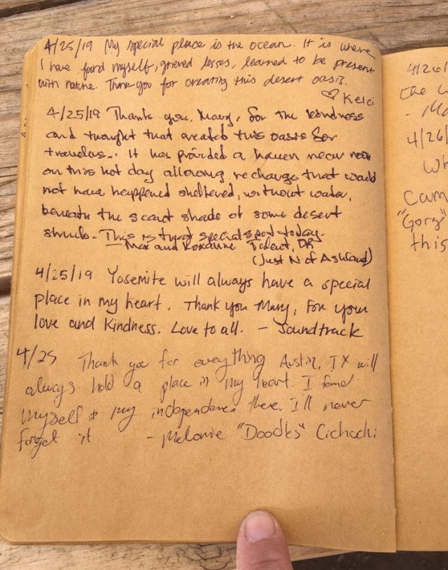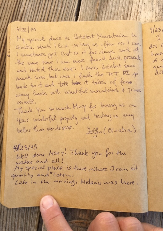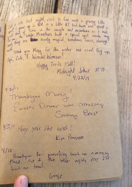 In 2019, the hiker oasis celebrated the 200th anniversary of Walt Whitman’s birth. The hiker register prompt followed a lead from Whitman’s poem “Crossing Brooklyn Ferry,” and asked hikers to describe a place that is special to them … that they feel a special connection with.