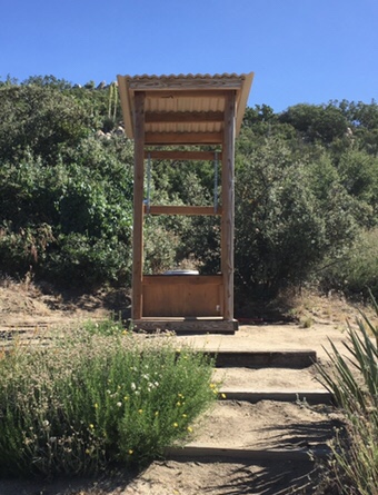 Each spring, my hiker oasis has a few extra amenities for the expected crush off thru hikers: an outhouse and shower, a trash can, and sunshade over the picnic area. With the thru hiker season winding down, I removed these “extra.” (The water tank, picnic tables, and little free library are there year-round.) I documented removal of the outhouse.