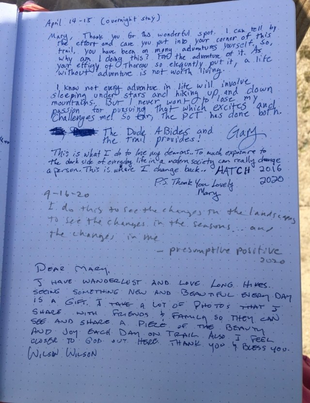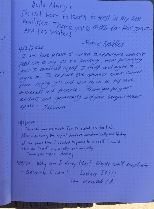 The theme for 2020 involves “perfect vision,” with an emphasis on inner vision and self-knowledge. This is reflected in the prompt for the hiker register in 2020: Why are you doing this?